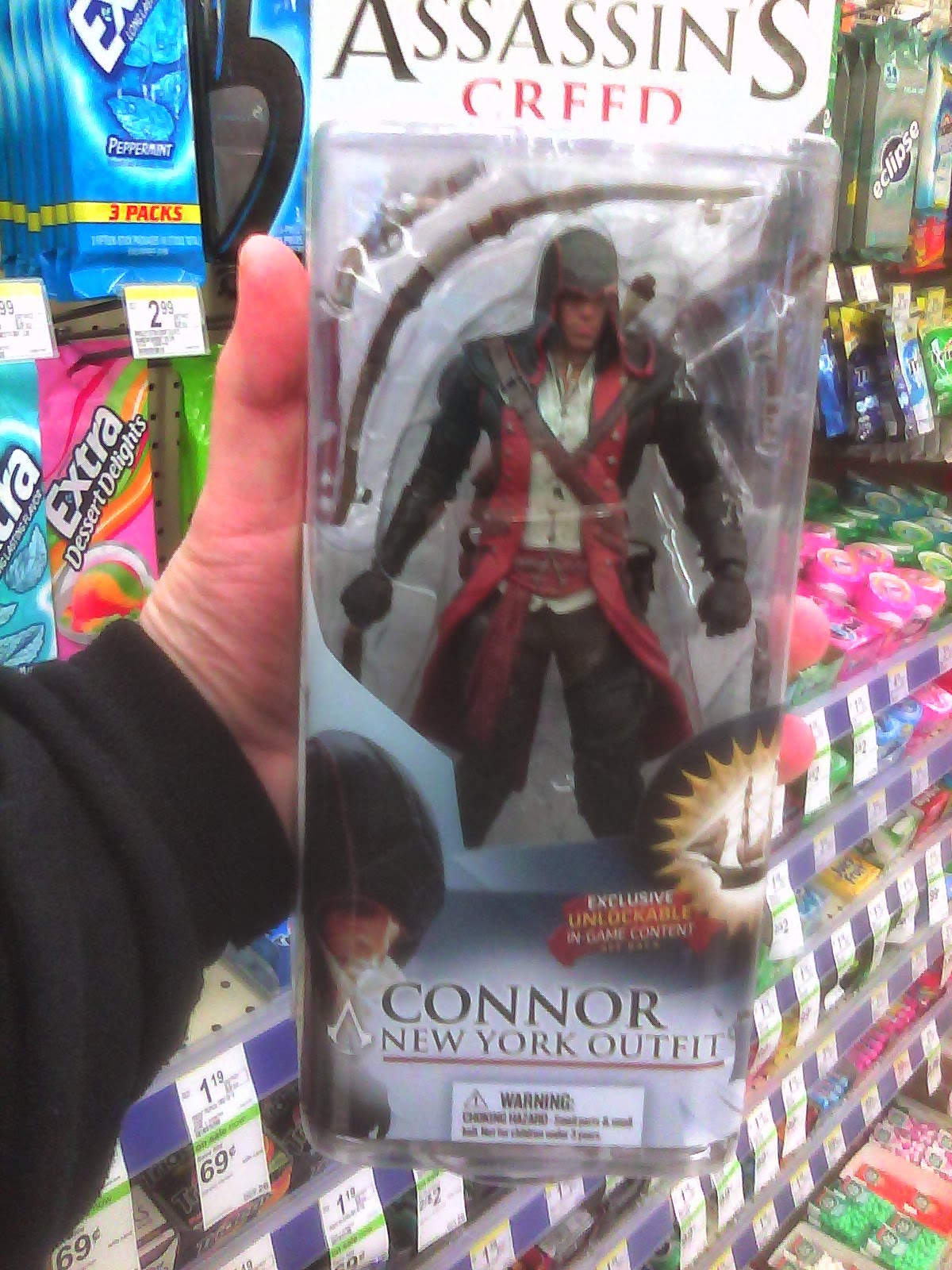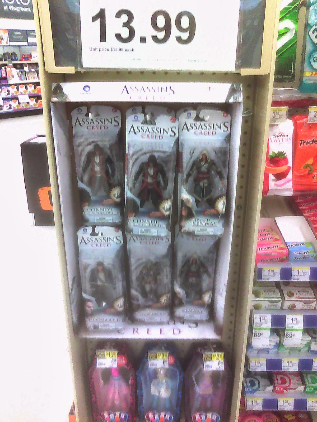Normally I'm pretty meh about action figures, even really cool ones, but this is ASSASSIN'S CREED!! Seriously, look at it! RIGHT NEXT TO THE GUM!!! Anyway, they really do look awesome, and to make things even better they each come with a special unlockable for Assassin's Creed IV.